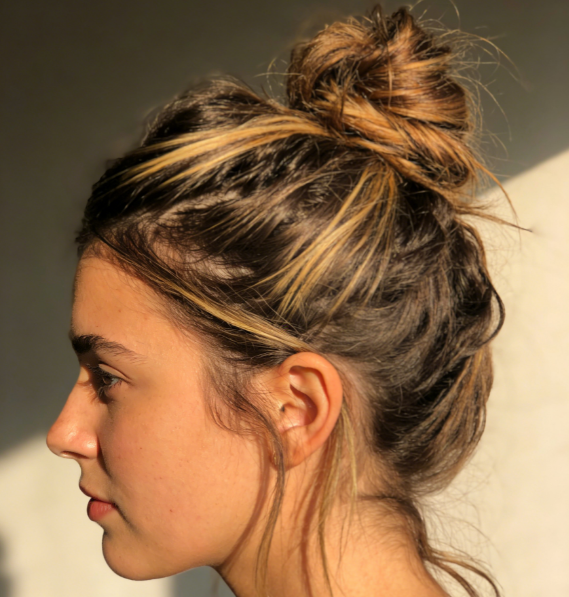 Brunette with Honey Highlights: Classic brown with soft honey highlights. It goes with every prom hairstyle—braids, buns, curls, or waves. The highlights add texture and make accessories sparkle. Best with: messy braided bun, half-up high ponytail with big curls.